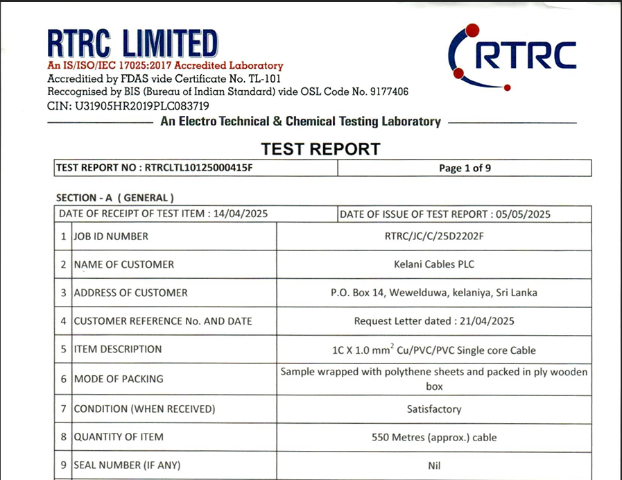 SLS 1504-2-31 (Kelani Brand Single Core Non-sheathed Cables)