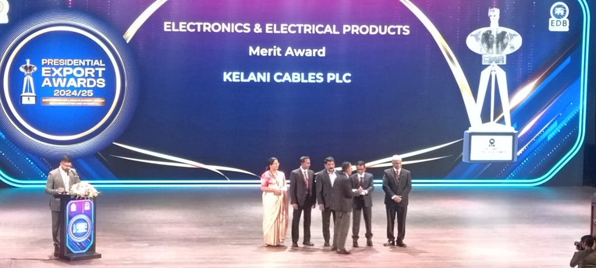 Kelani Cables PLC is proud to receive the Merit Award in the Electronics & Electronic Products Category at the 27th Presidential Exports Awards Cer